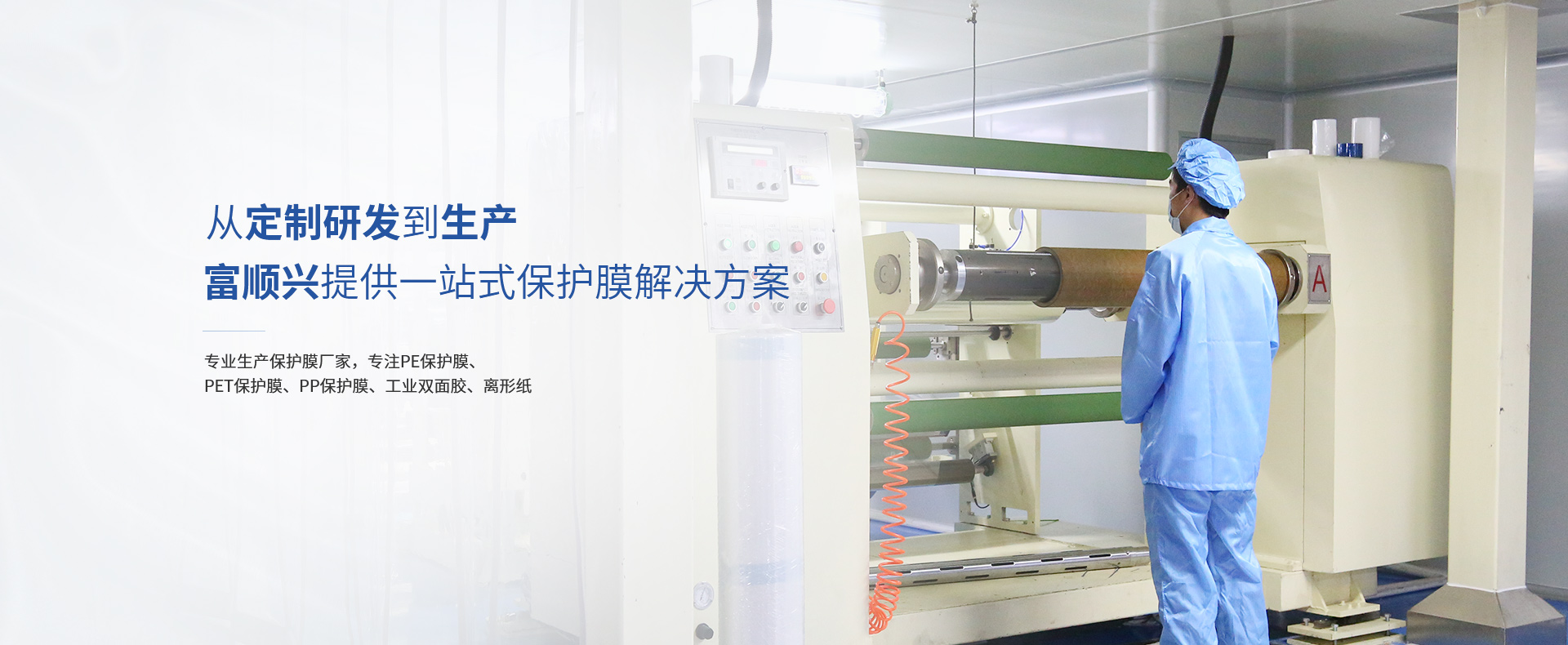 深圳市富順興科技有限公司成立于2000年,專業生產保護膜廠家,專注PE保護膜、PET保護膜、PP保護膜、工業雙面膠、離形紙等產品,廣泛應用于電子產品及lcd液晶顯示器保護、模切保護、塑塑膠材質保護、金屬材質保護等領域。